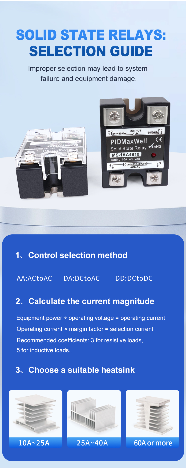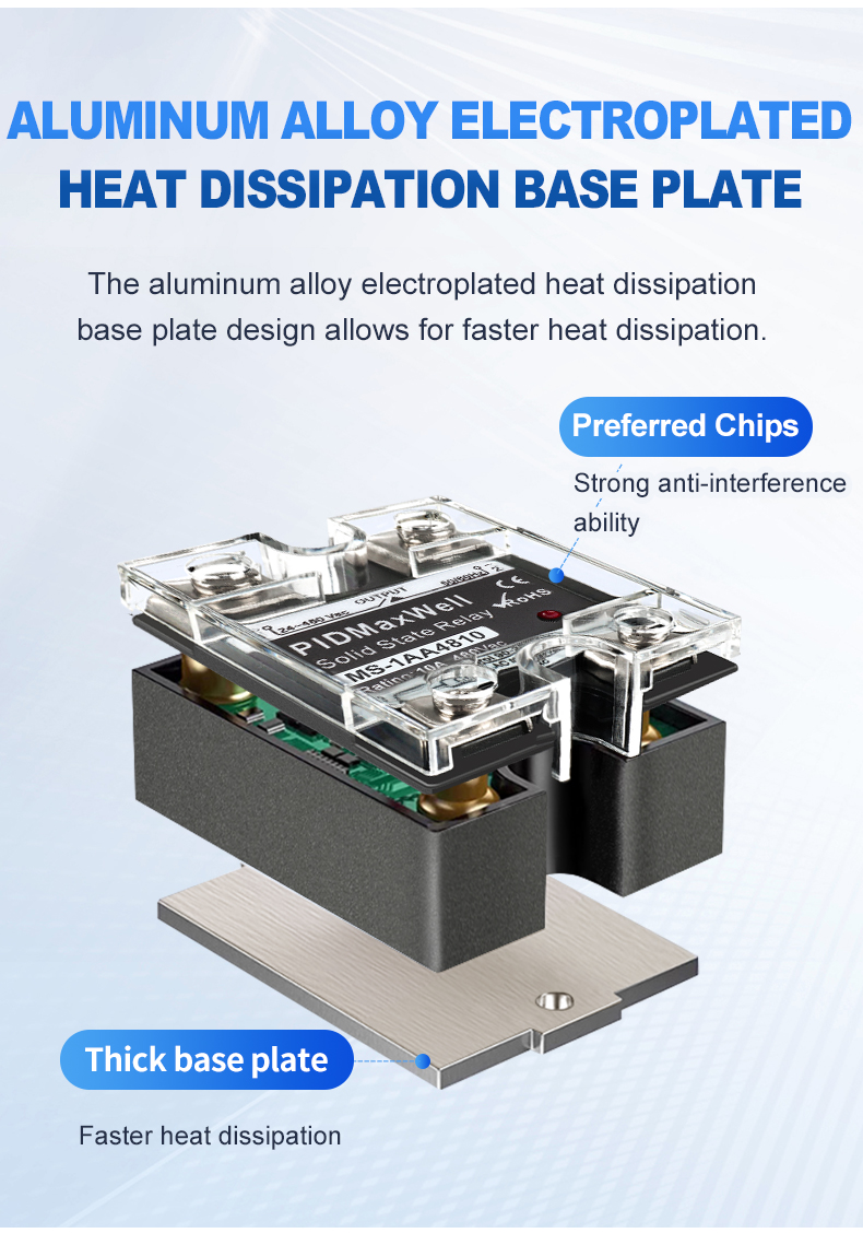 | Componentes de conmutación de alta calidad | Utiliza un TRIAC de alta calidad para los modelos de 10A a 40A; configuración SCR en serie para 60A y superiores. |