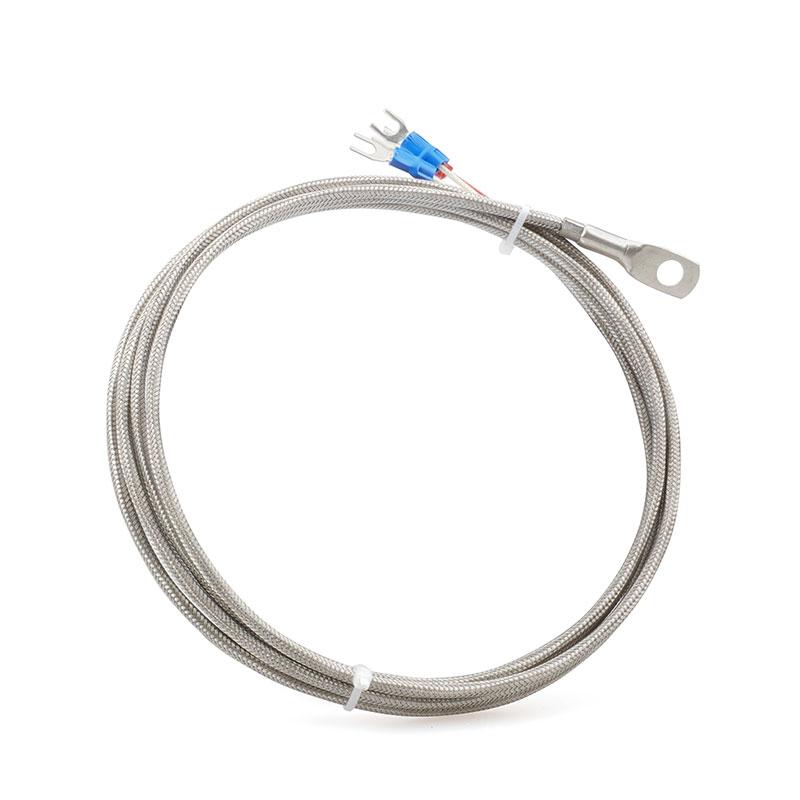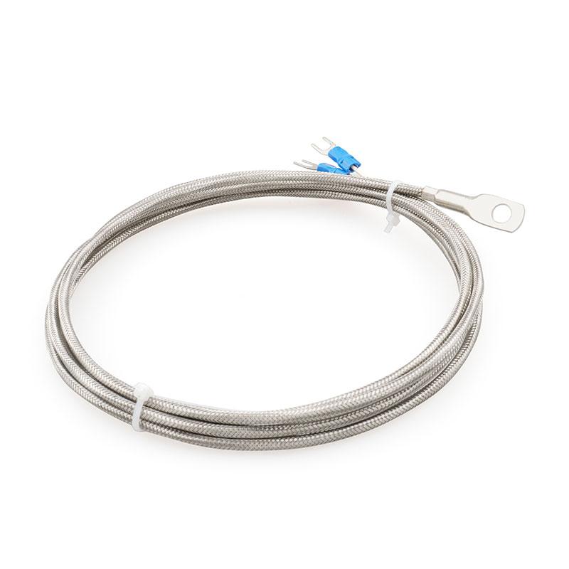 El diámetro interior del terminal de anillo está disponible de serie en 6 mm u 8 mm, y puede personalizarse para adaptarse a cualquier tamaño de tornillo o perno especificado por el cliente. El sensor se suministra con un cable trenzado de acero inoxidable para protección mecánica y apantallamiento EMI, y el material del cable conductor es totalmente seleccionable entre trenzado de acero inoxidable, silicona, fibra de vidrio o teflón, para adaptarse a las condiciones térmicas y químicas del entorno de instalación. Las longitudes de cable estándar son de 2 m, 3 m y 5 m, y se pueden solicitar longitudes personalizadas. El sensor está disponible para rangos de temperatura de hasta 100 °C, 200 °C o 300 °C.