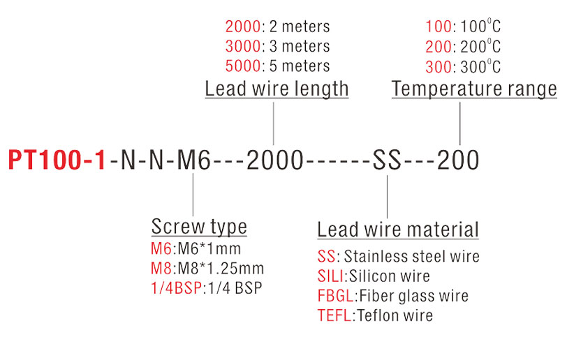 PT100-1 – N – N – [①] – [②] – [③] – [④]